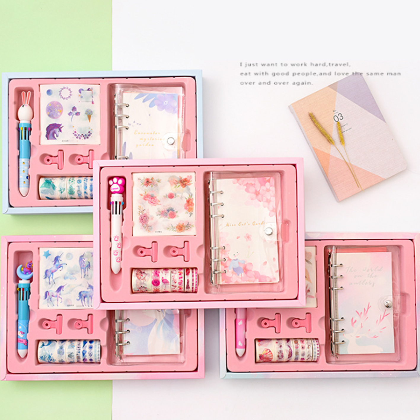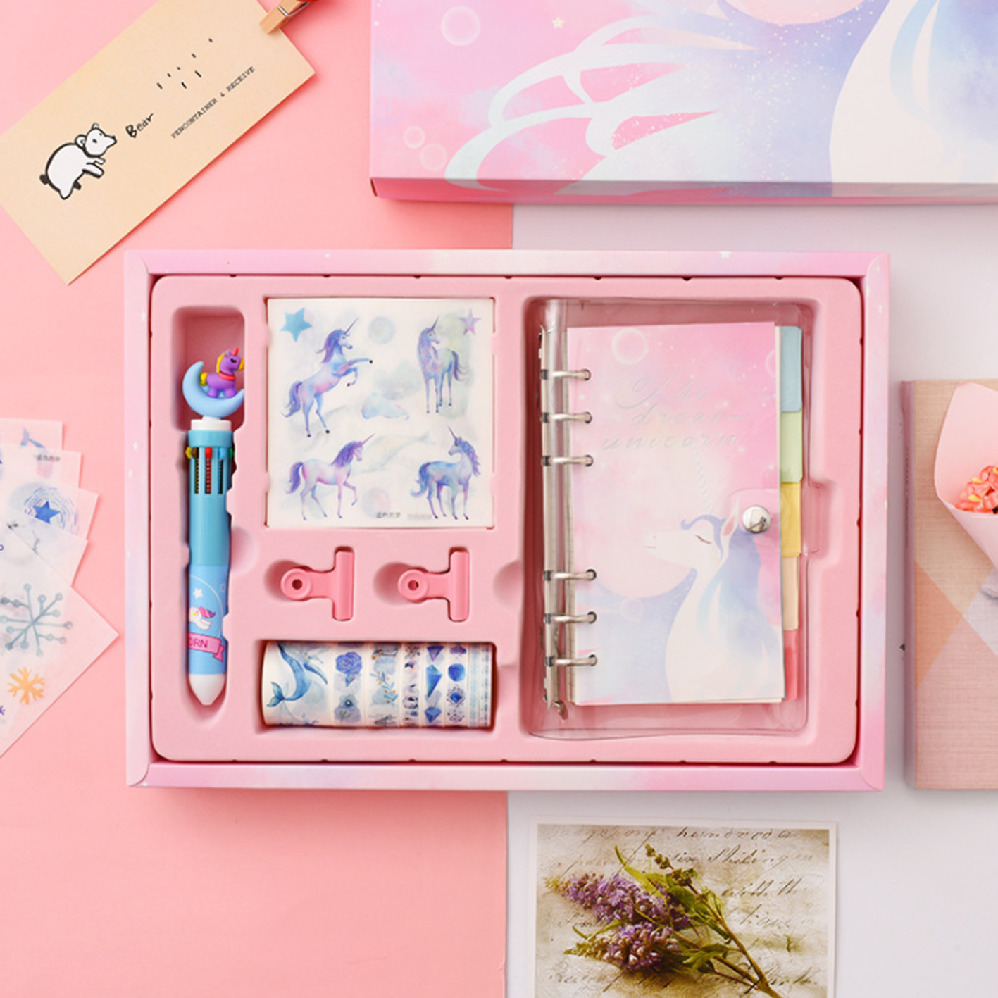 Набор The dream Unicorn-Единорог, блокнот,скотч, наклейки, закладка, зажимы