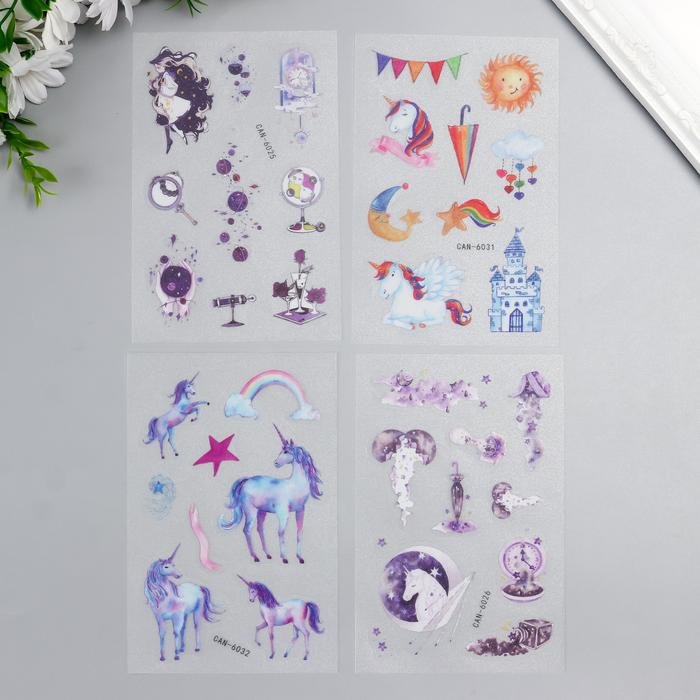 Наклейка бумага “Сказочные единороги” шершавая набор 4 шт 14,5х9,5 см