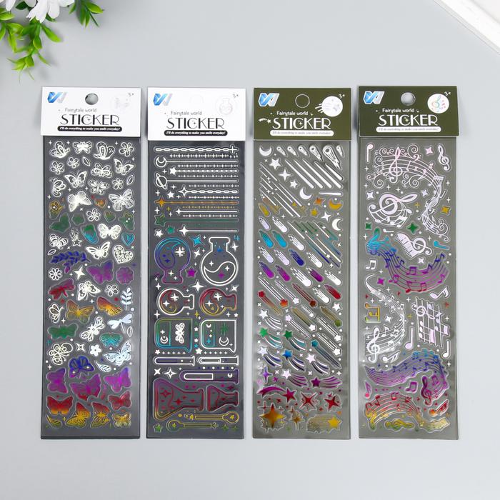 Наклейка пластик серебристые переливы “Бабочки и музыка” МИКС 7,5х26 см