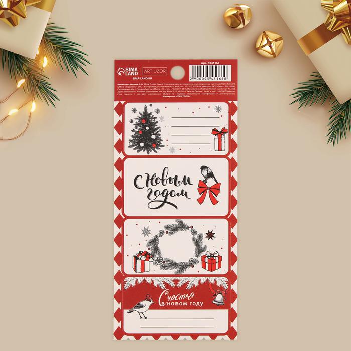 Наклейки бумажные «Счастья в новом году », на подарки, 17 х 7.5 см