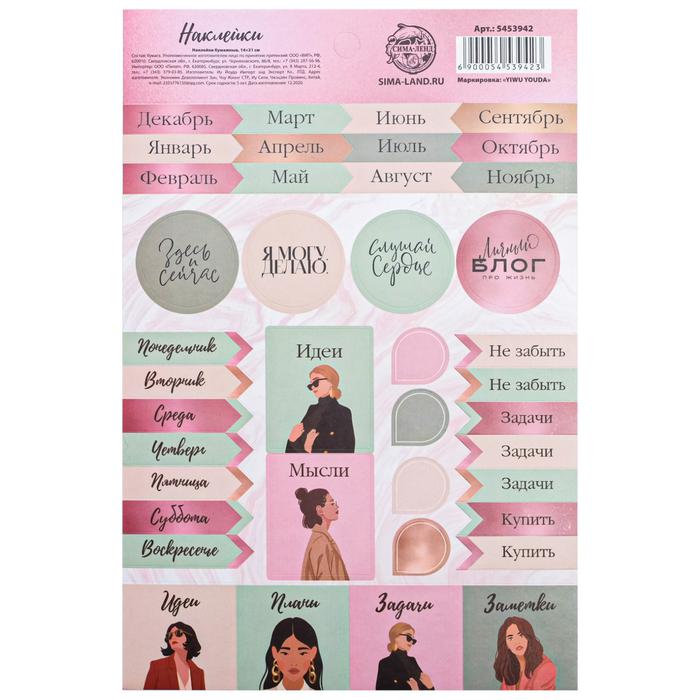 Наклейки бумажные «Слушай сердце», 14 х 21 см