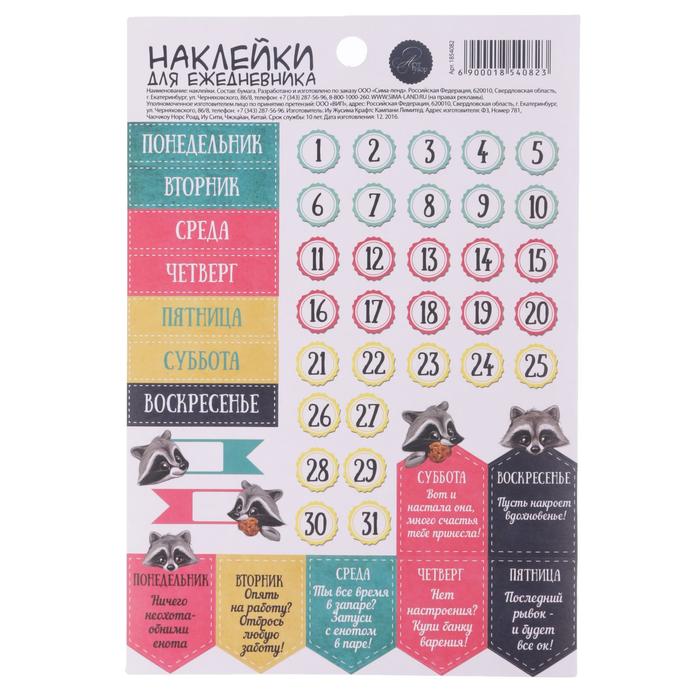 Наклейки для ежедневника «Дни недели», 11 х 16 см