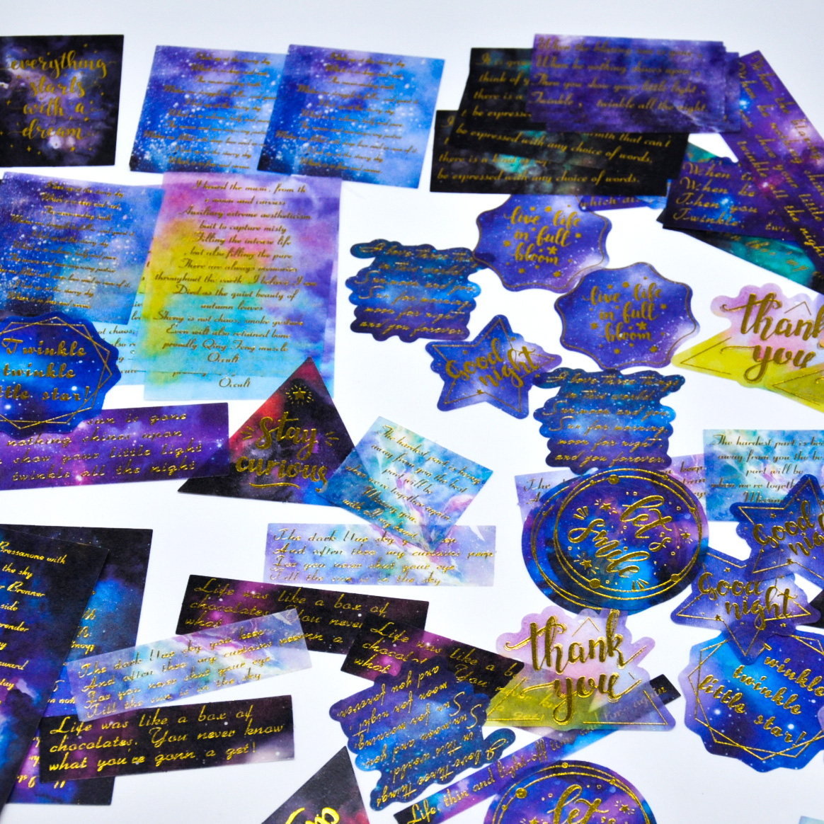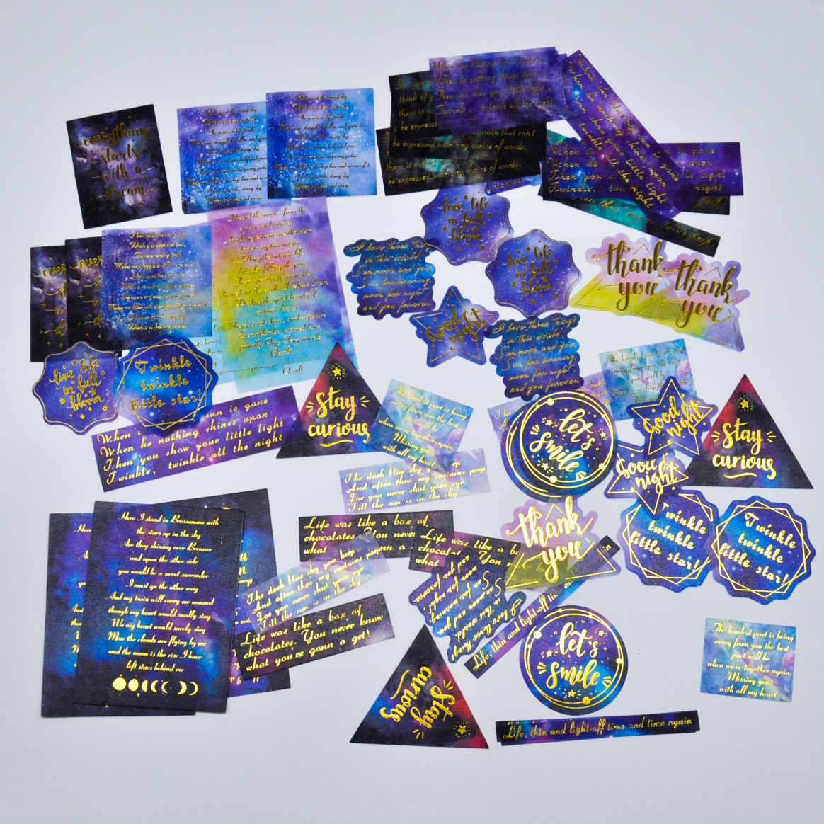 Наклейки с золотым тиснением 60 шт-Космос слова