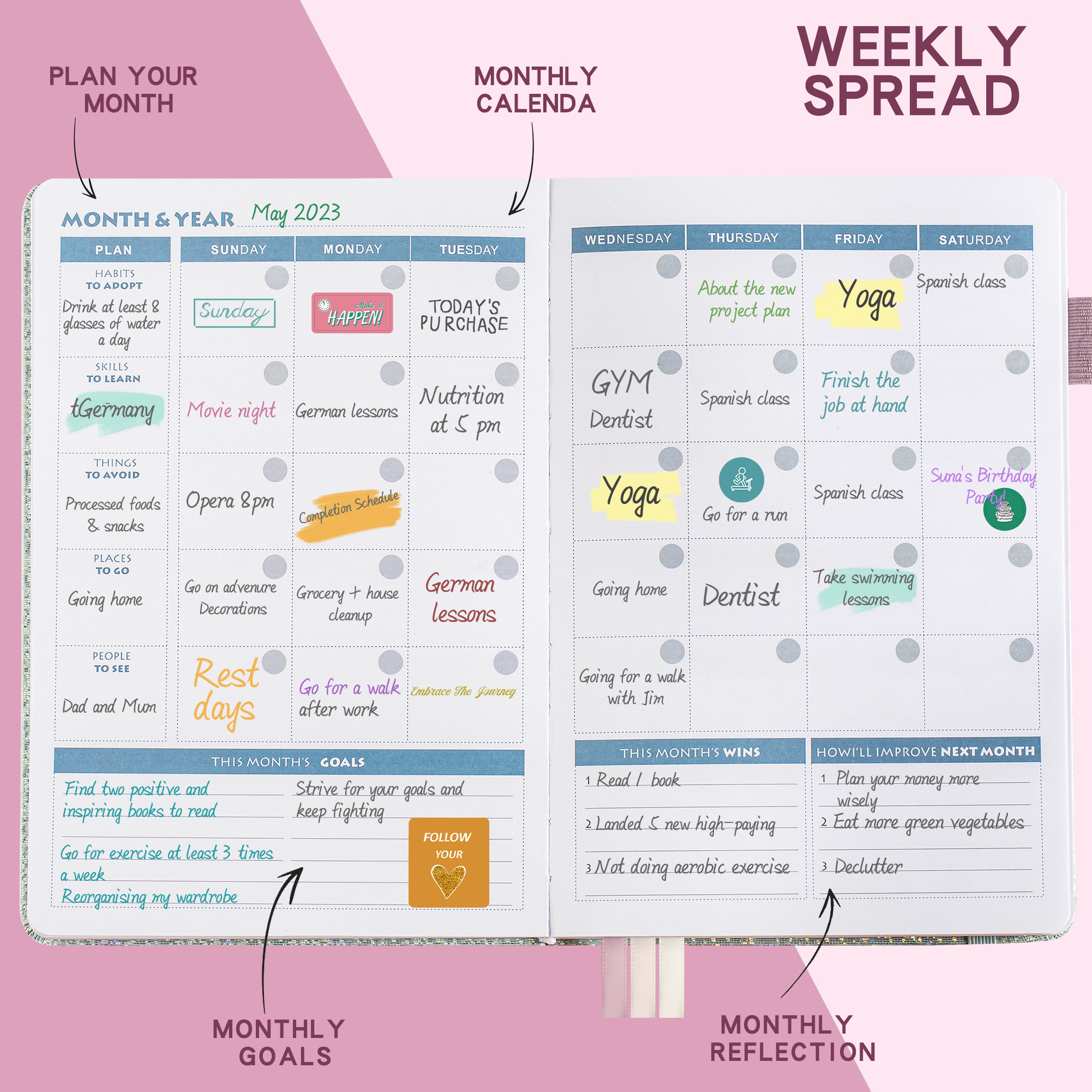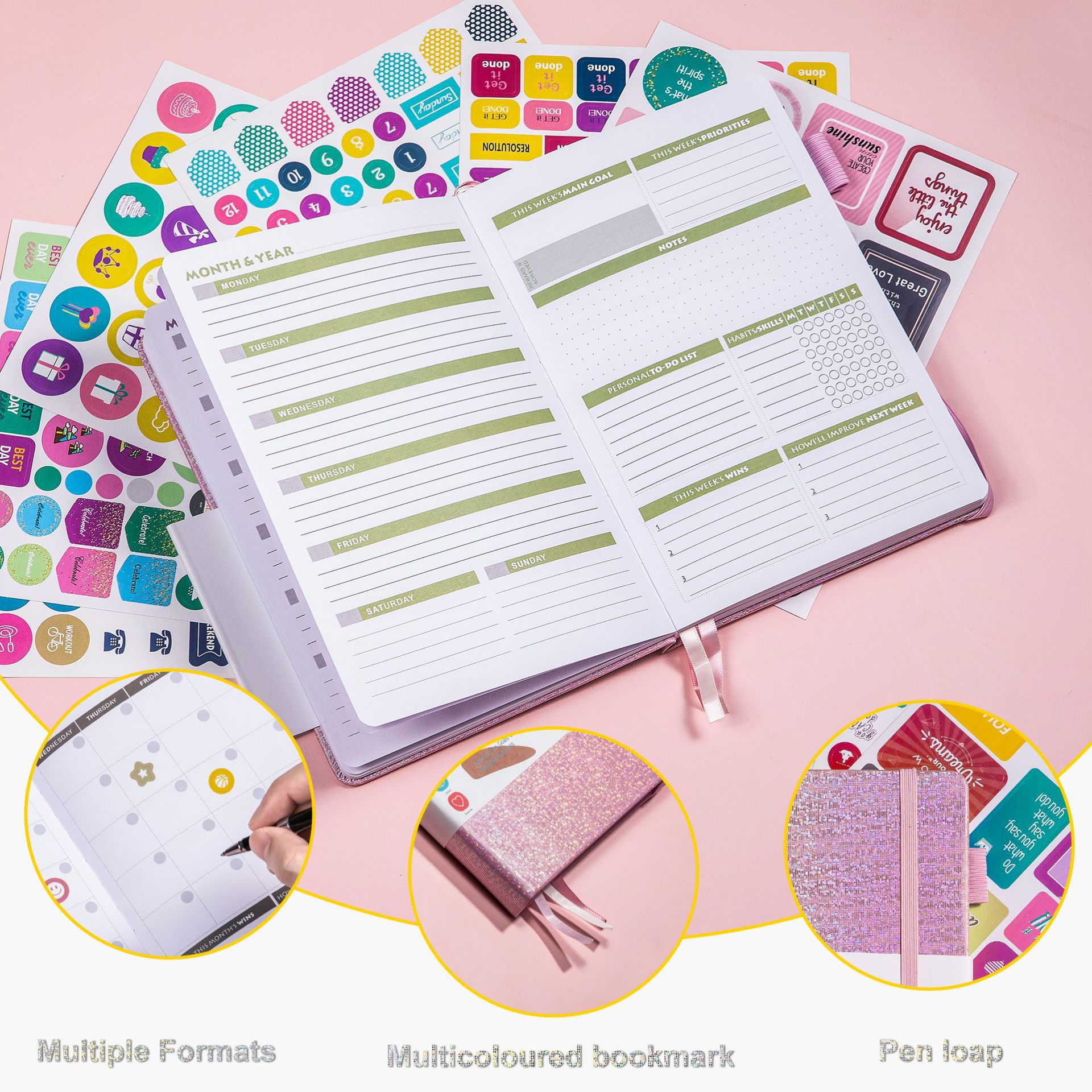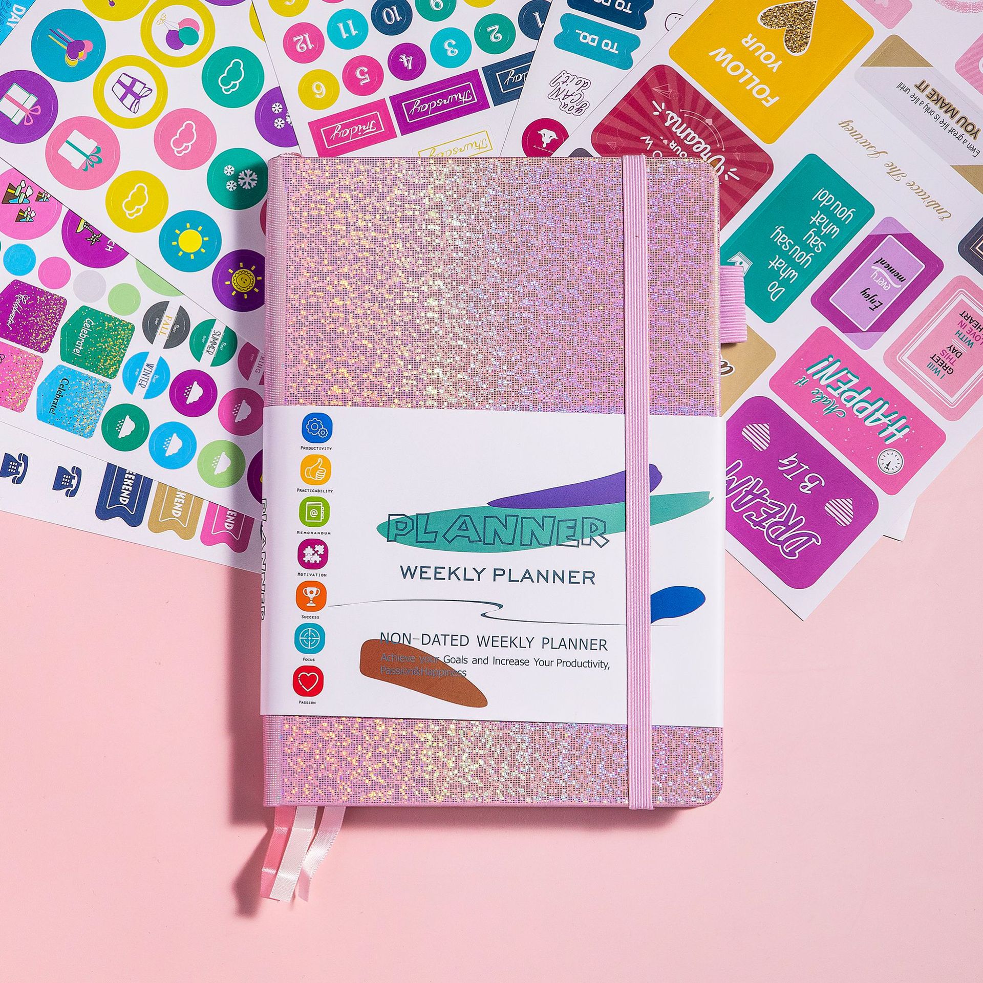 Недатированный планер “Глиттер”+6 стикеров-А5-120гр/м3-100л-Розовый