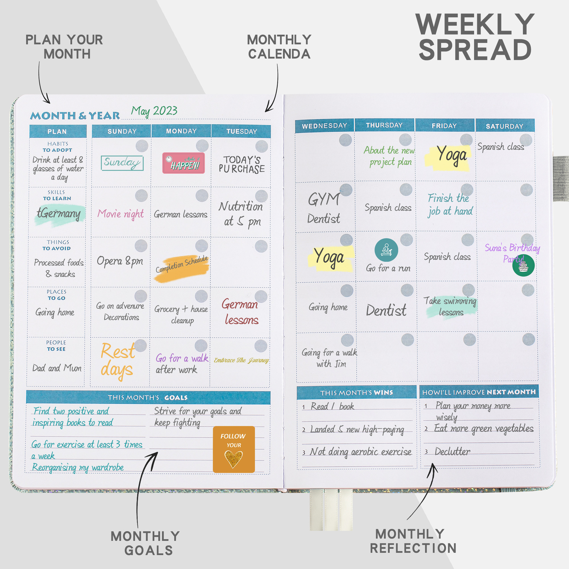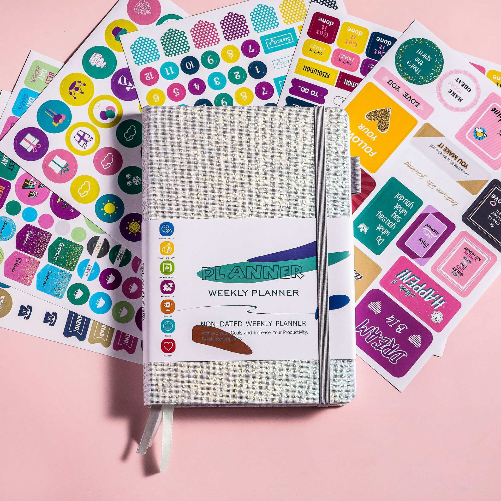 Недатированный планер “Глиттер”+6 стикеров-А5-120гр/м3-100л-Серебряный
