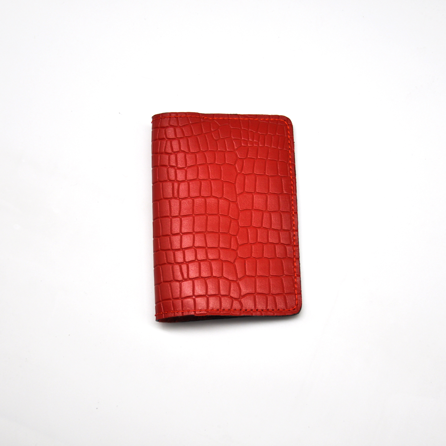 Обложка для паспорта из натуральной кожи под крокодила-Красный
