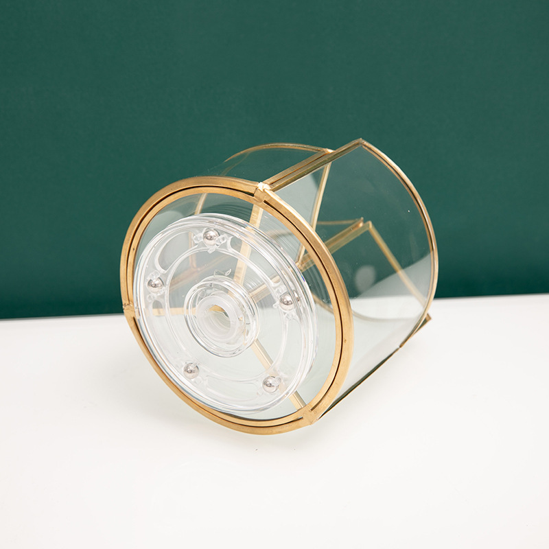 Органайзер для косметики круглый вращающийся мини “Стекло и латунь”-12х12х13 см (3 деления)