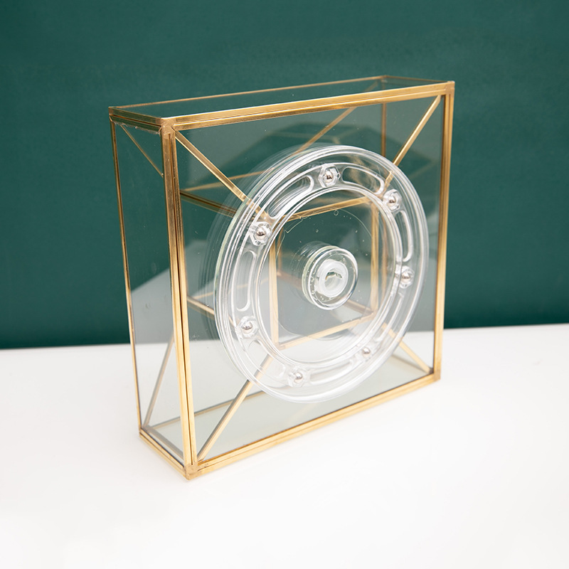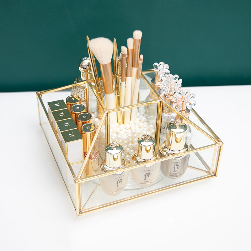 Органайзер для косметики квадратный вращающийся “Стекло и латунь”-20х20х12 см (5 делений)
