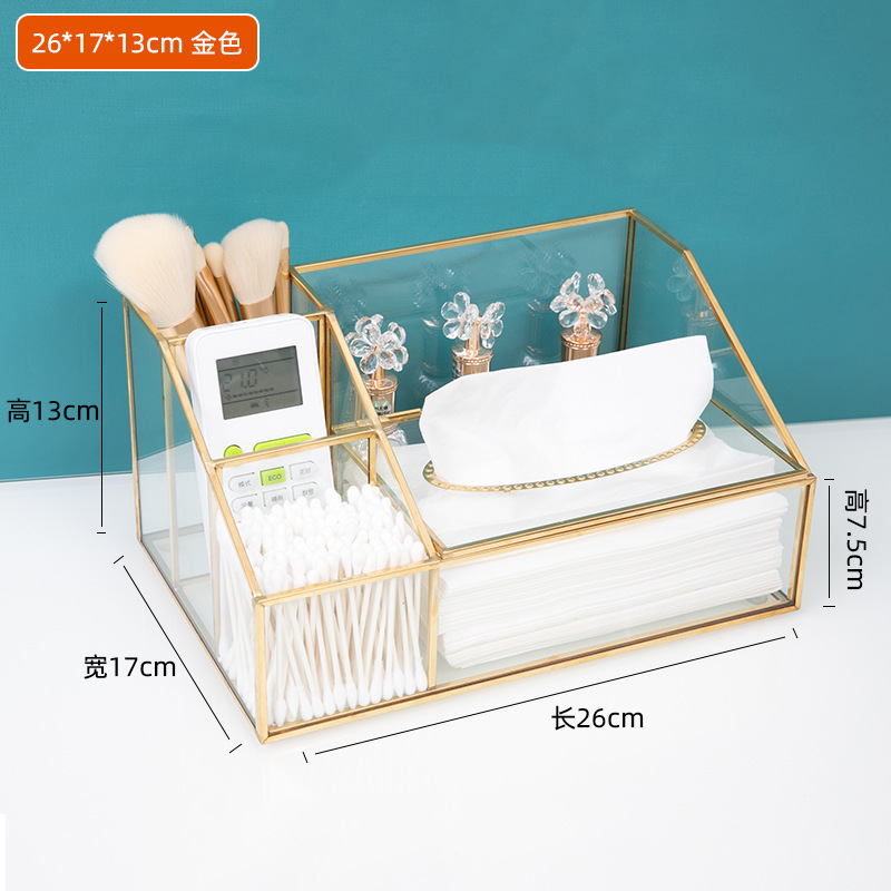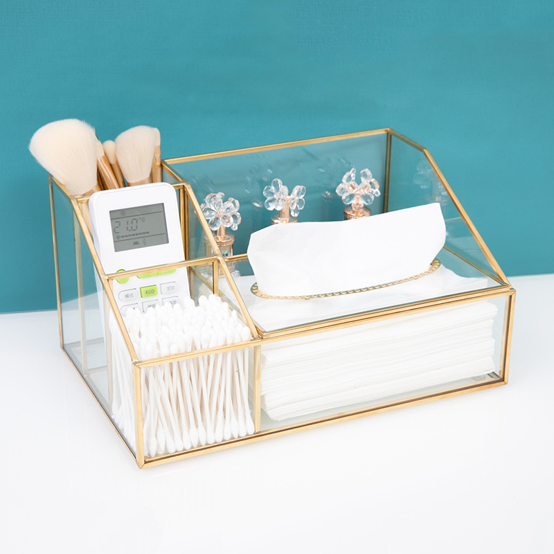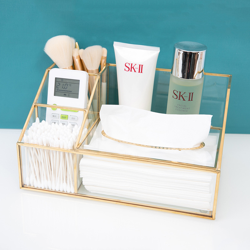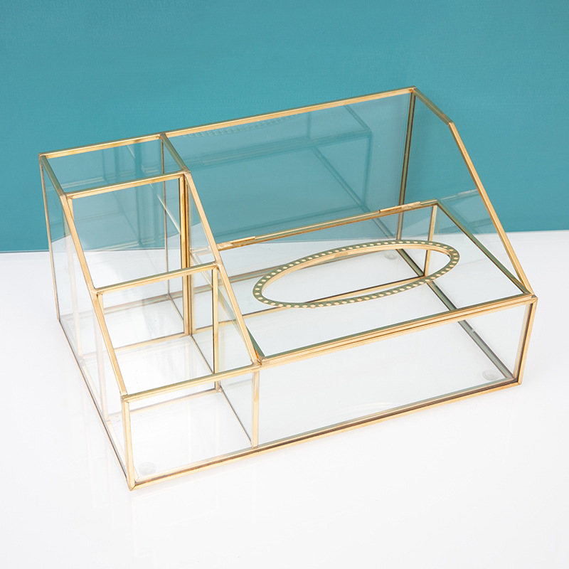 Органайзер для салфеток и мелочей “Стекло и латунь”-26х17х13 см (4 деления)