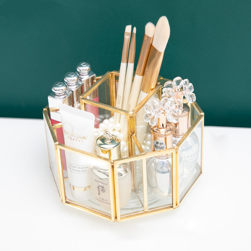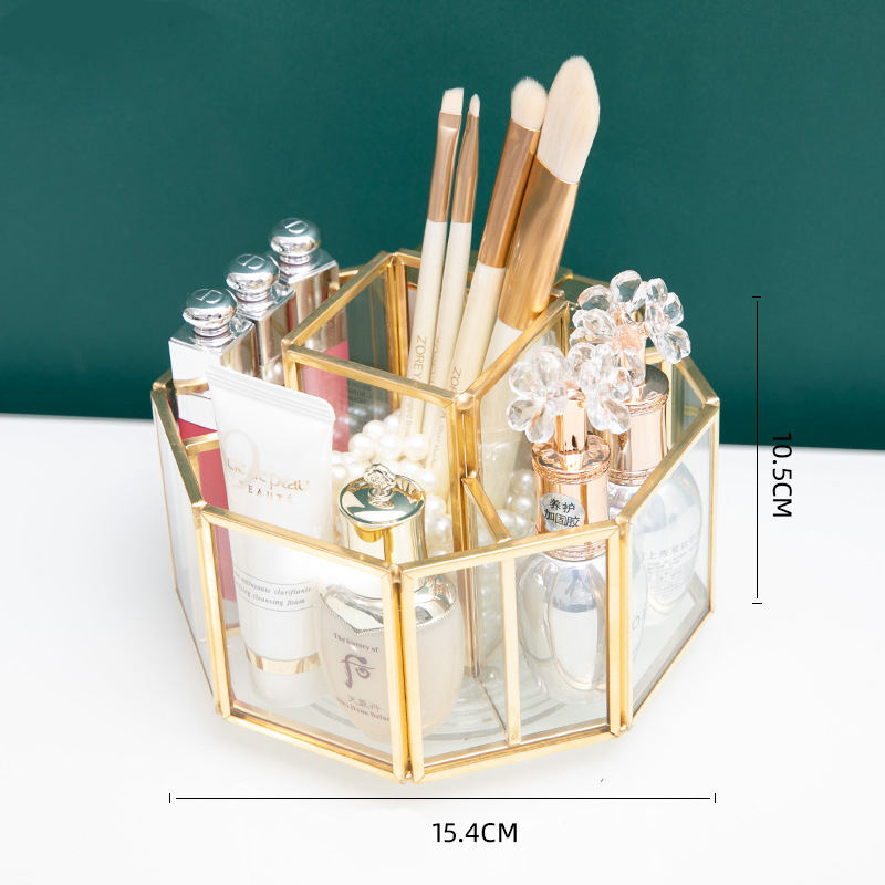 Органайзер круглый для косметики “Стекло и латунь”-16х11 см
