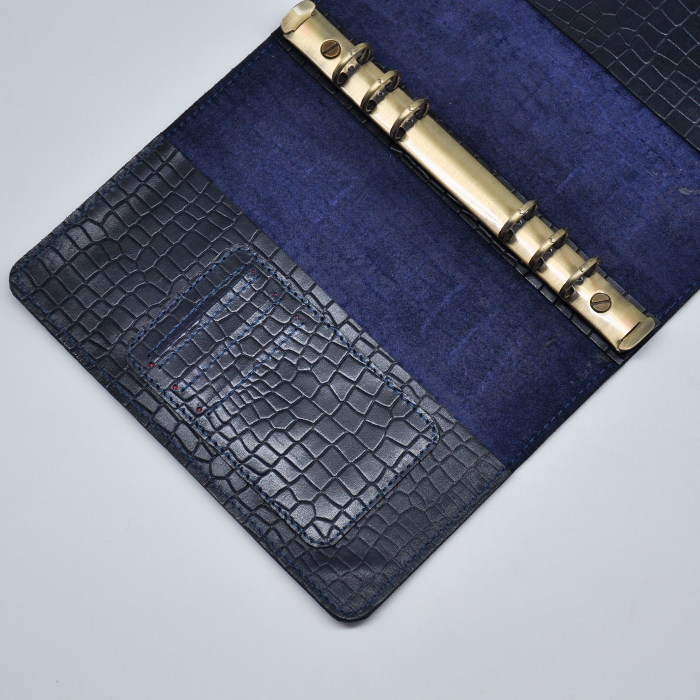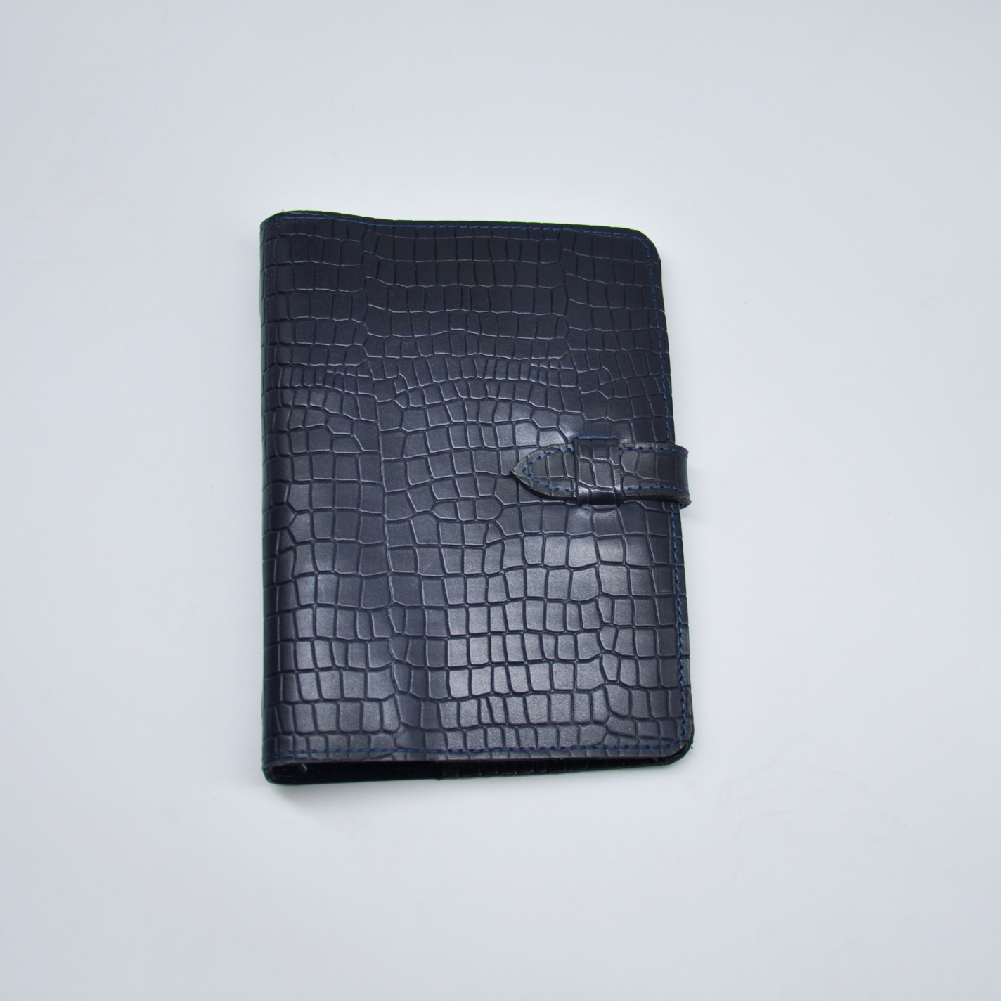 Органайзер-обложка без листов из натуральной кожи под крокодила-А5-Чёрно-синий