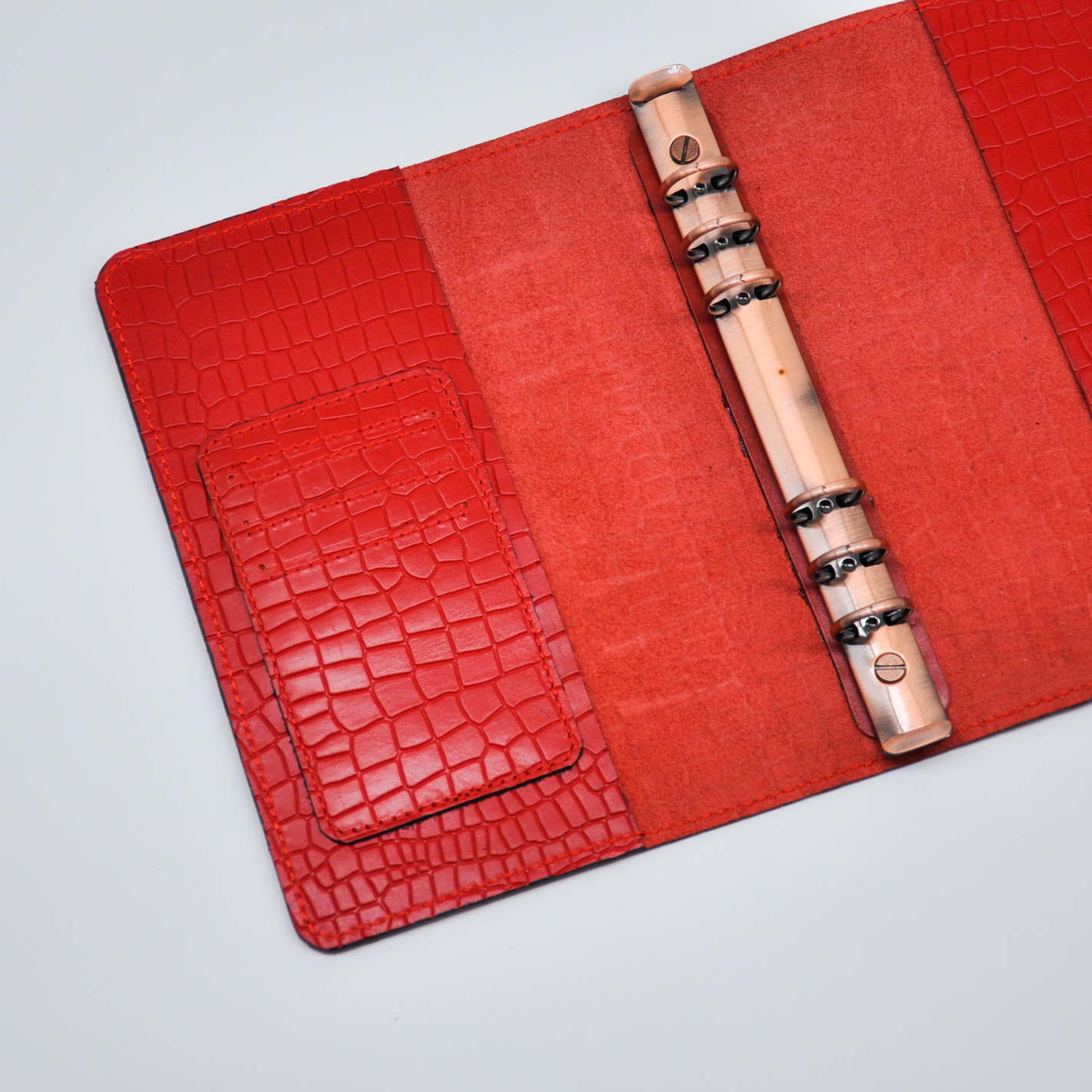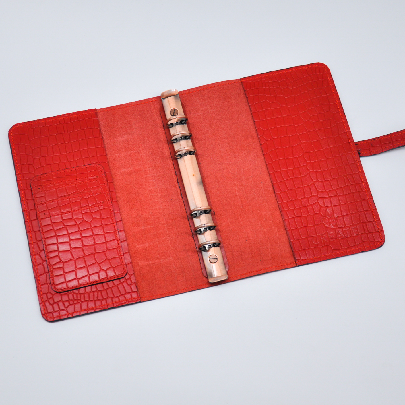 Органайзер-обложка без листов из натуральной кожи под крокодила-А5-Красный