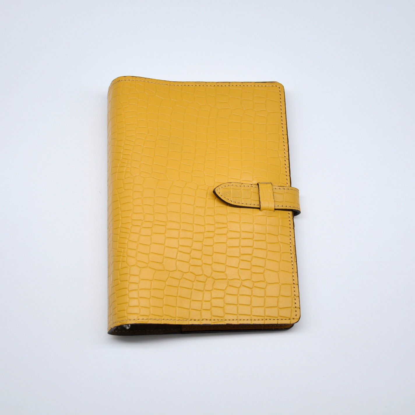 Органайзер-обложка без листов из натуральной кожи под крокодила-А5-Жёлтый