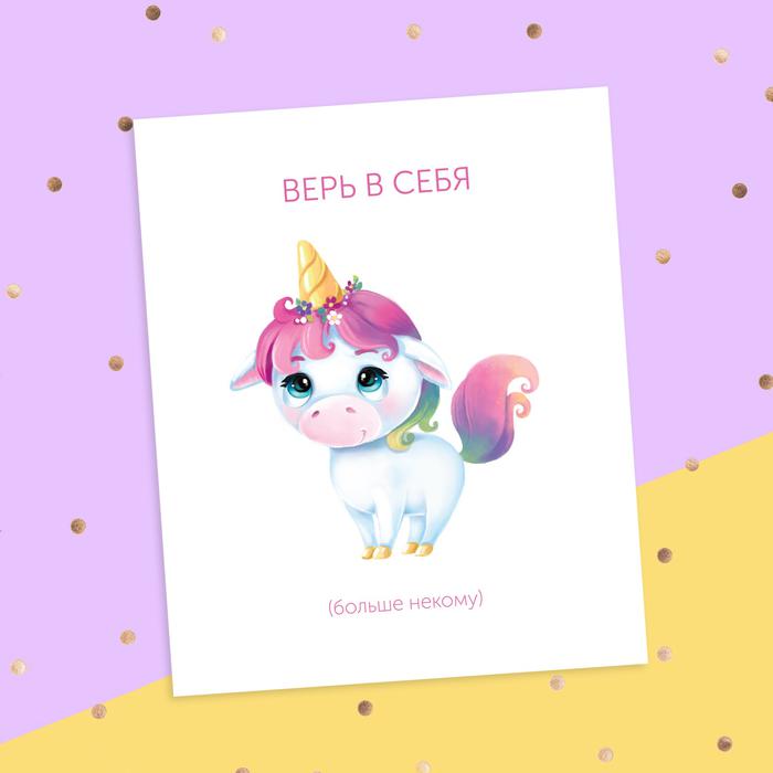 Открытка-инстаграм «Верь в себя» единорог, 8.8 x 10.7 см