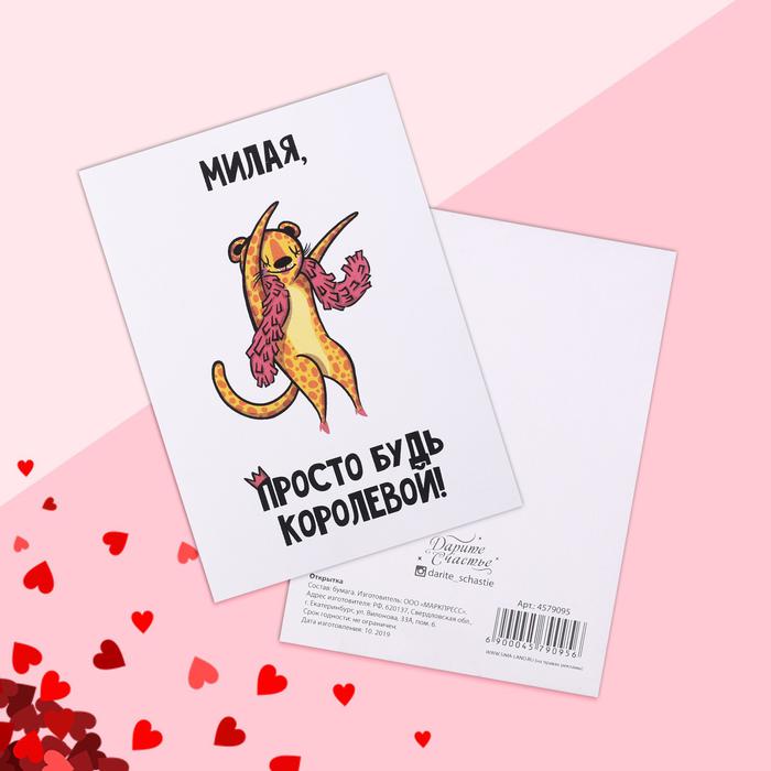 Открытка на каждый день «Милая, просто будь королевой» гепард, 7.5 х 10 см
