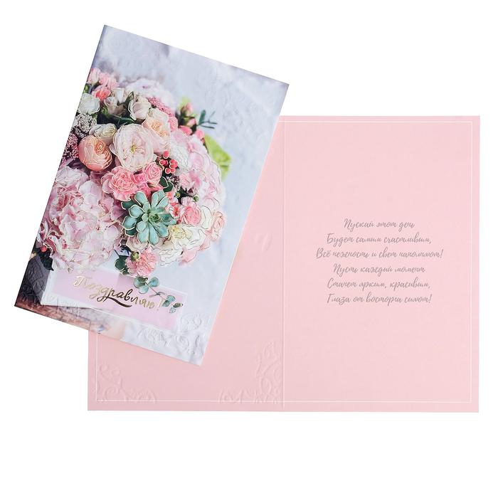 Открытка “Поздравляю!” конгрев, тиснение, нежный букет, 12 х 18 см