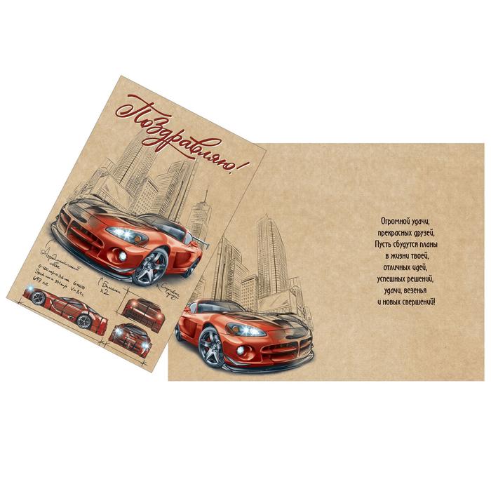 Открытка “Поздравляю!” красный автомобиль, 12 х 18 см