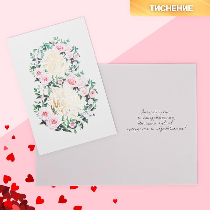 Открытка «С 8 марта», восемь, 12 х 18 см , тиснение