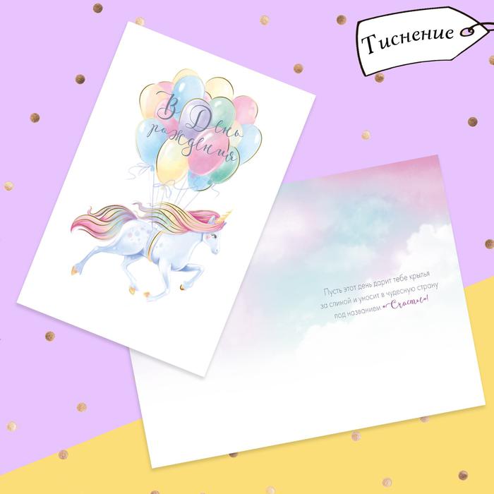 Открытка «С Днём рождения!», единорог, тиснение, 12 х 18 см