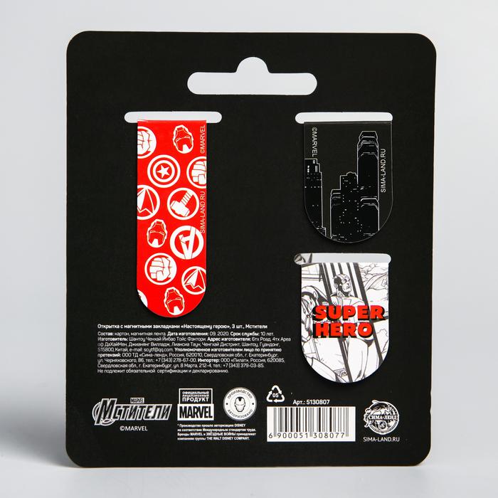 Открытка с магнитными закладками “Настоящему герою”, MARVEL, 3 шт.