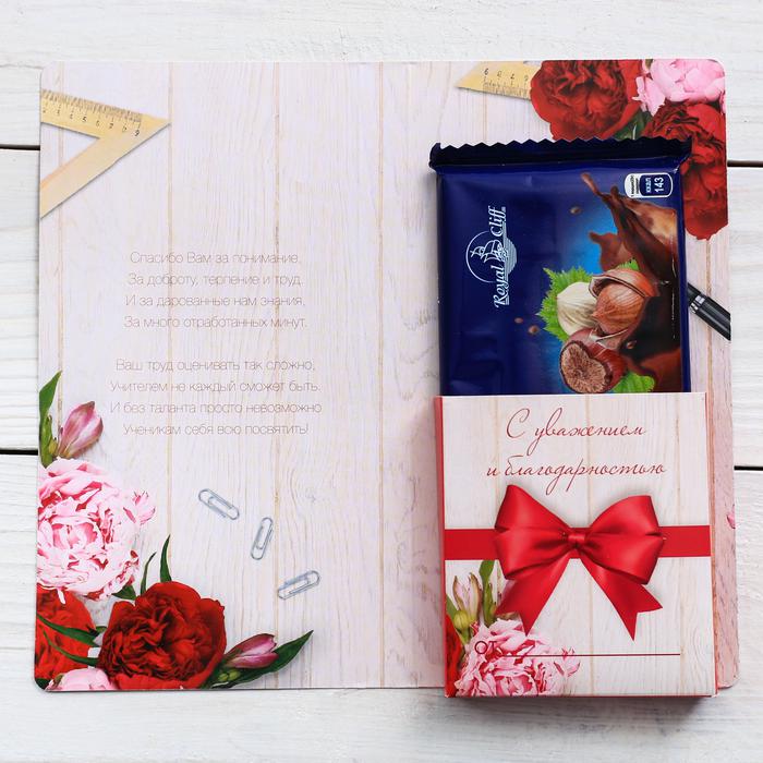 Открытка с местом под шоколадку “Лучшему учителю