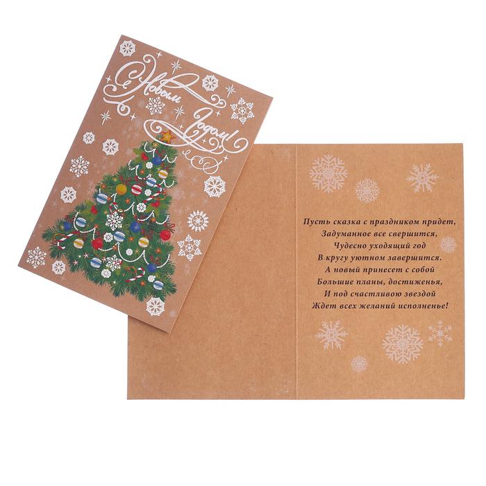 Открытка “С Новым Годом!” глиттер, пластизоль, ёлочка с новогодними игрушками
