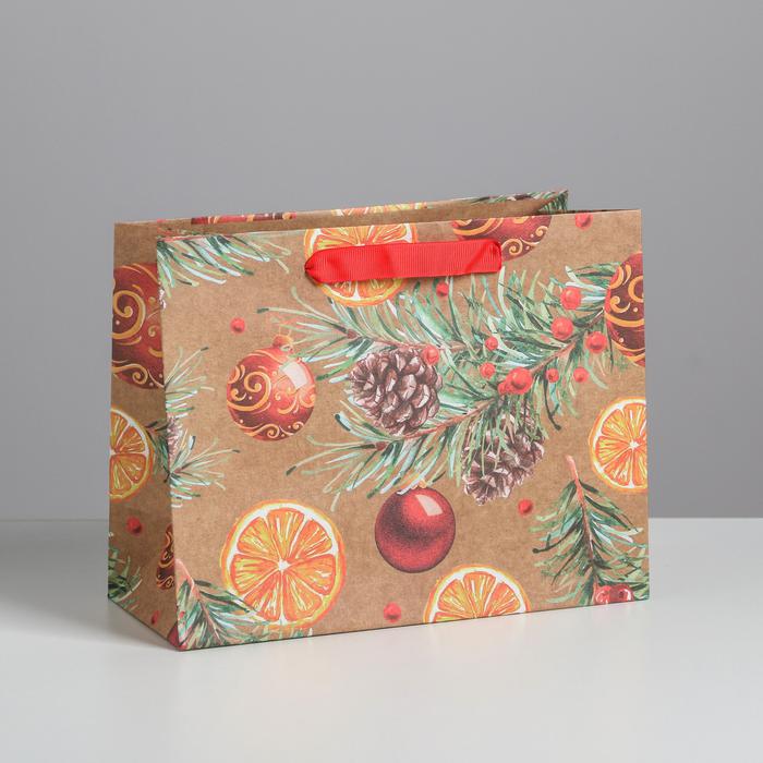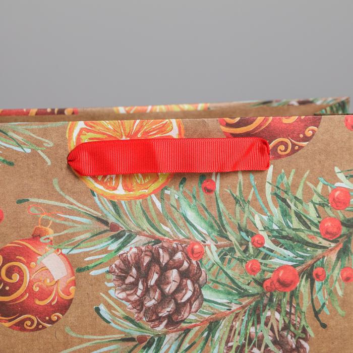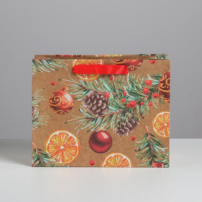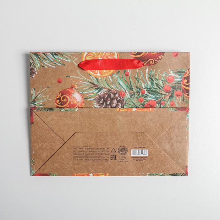Пакет крафтовый горизонтальный «Новогодние шарики», MS 23 x 18 x 10 см