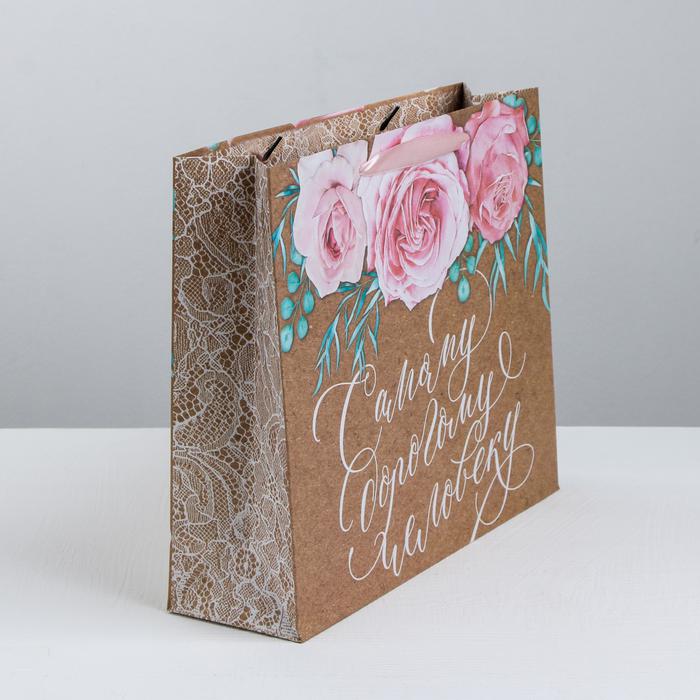 Пакет крафтовый горизонтальный «Самому дорогому человеку», ML 27 x 23 x 11.5 см