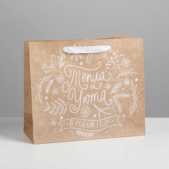 Пакет крафтовый горизонтальный «Тепла и уюта», ML 27 x 23 x 11.5 см