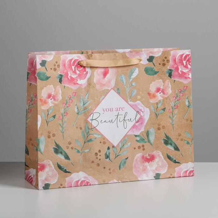 Пакет крафтовый горизонтальный «You are beautiful», 40 х 31 х 11.5 см