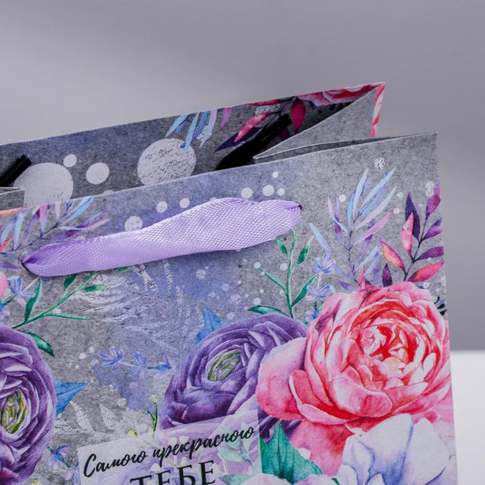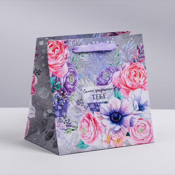 Пакет крафтовый квадратный «Цветочный вихрь», 30 х 30 х 12 см