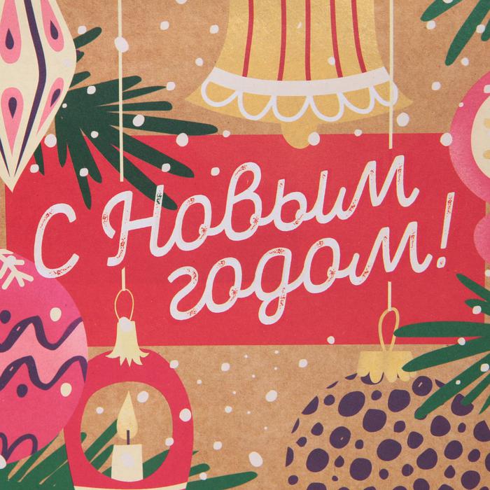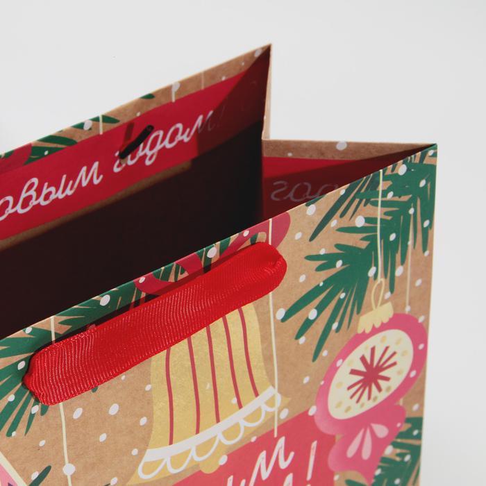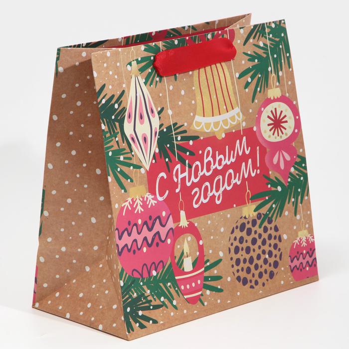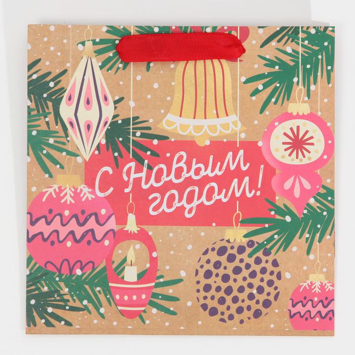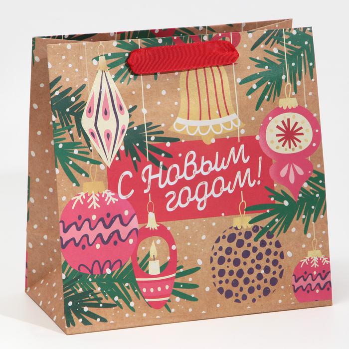 Пакет крафтовый квадратный «Новогодние чудеса», 22 x 22 x 11 см
