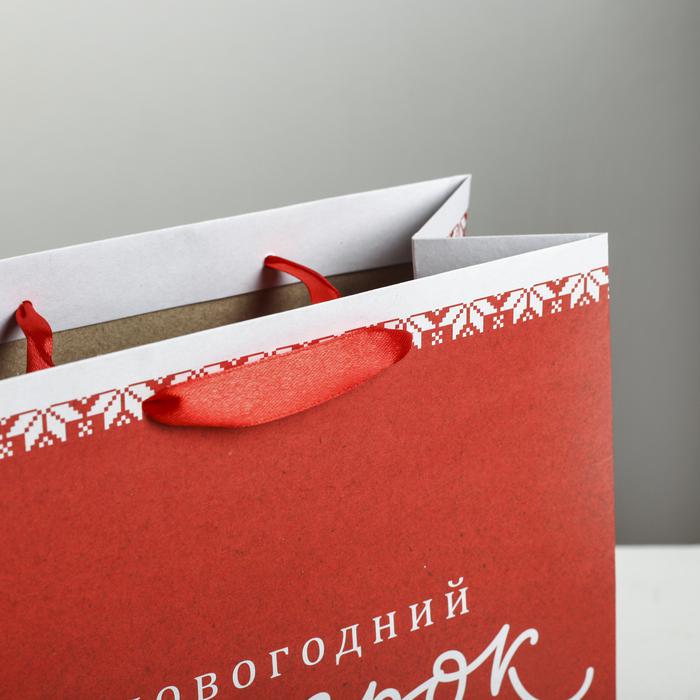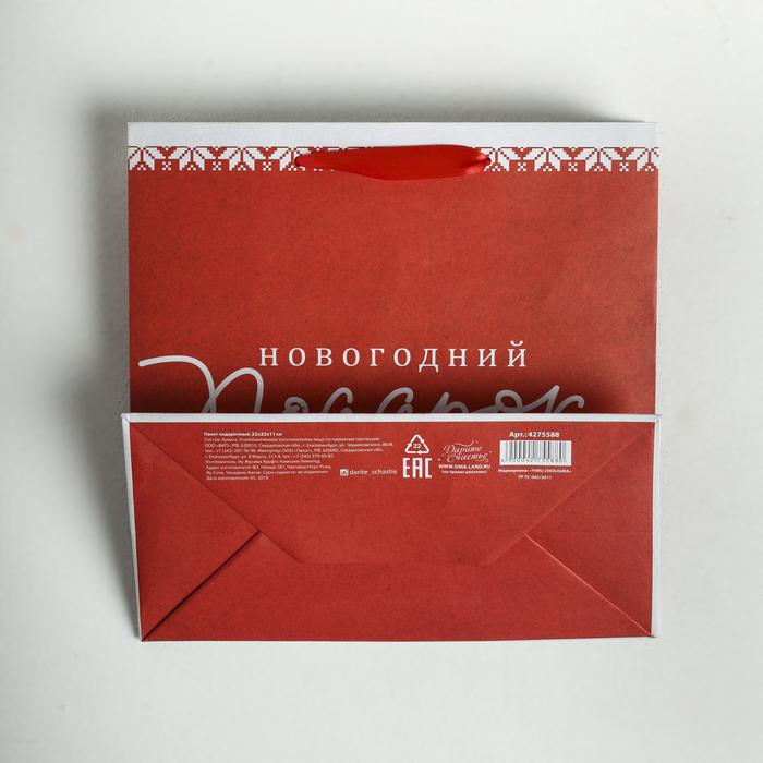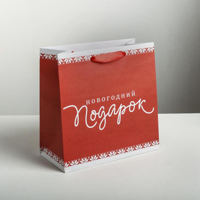 Пакет крафтовый квадратный «Новогодний подарок», 22 х 22 х 11см