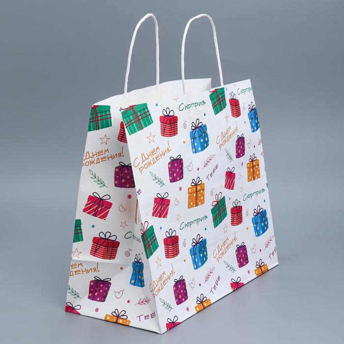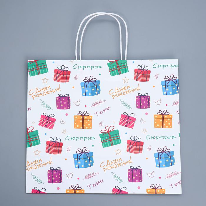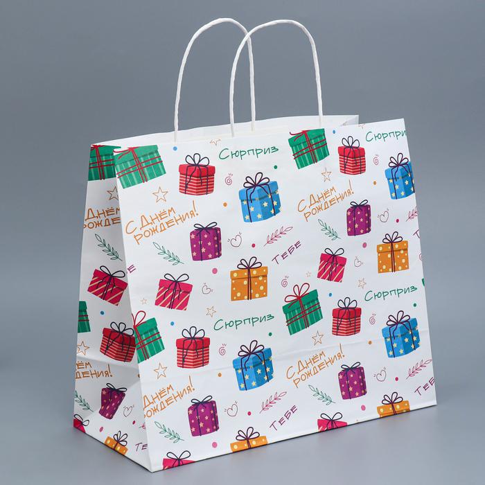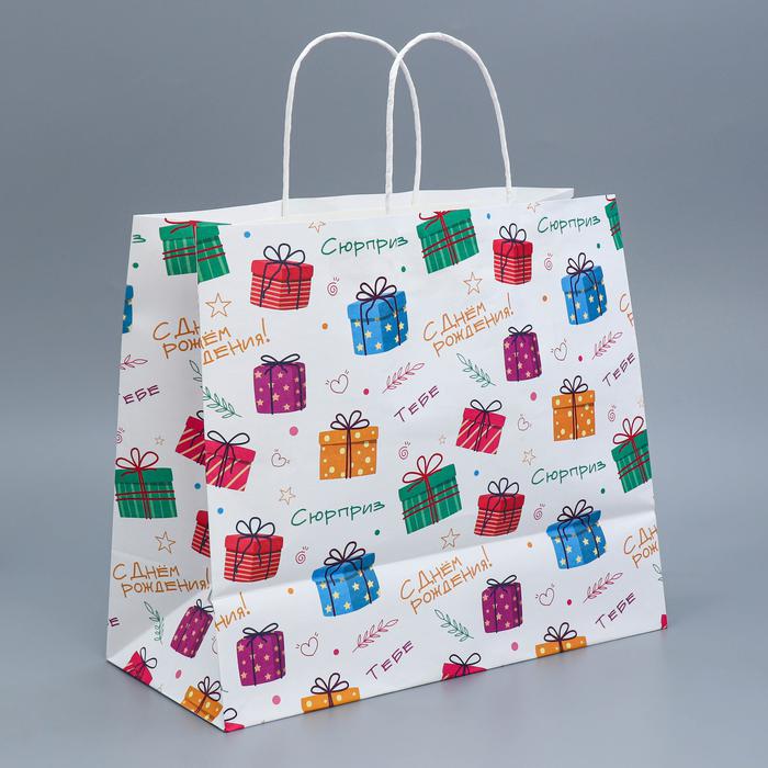 Пакет крафтовый «Подарки», 32 х 28 х 15 см