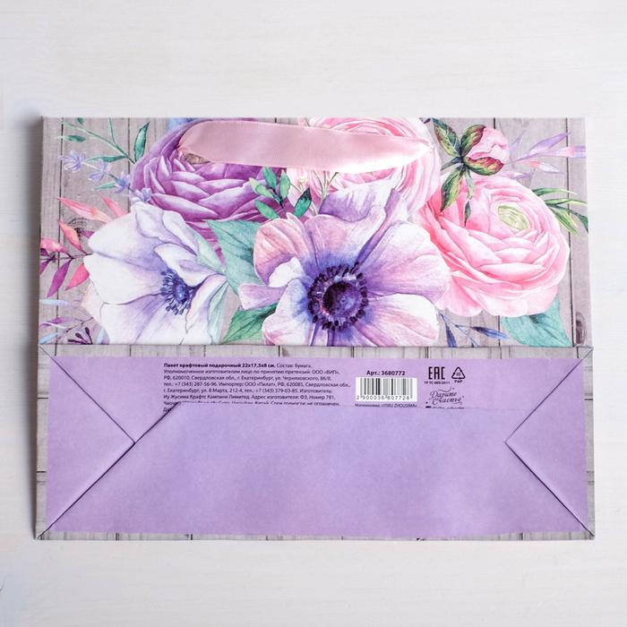 Пакет крафтовый подарочный «Счастье внутри», 22 х 17,5 х 8 см