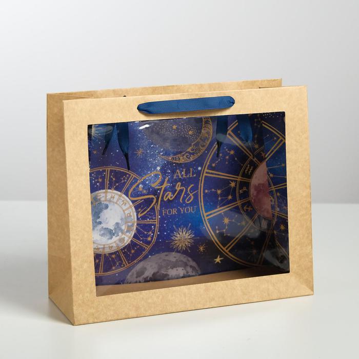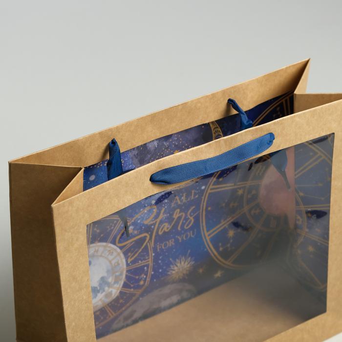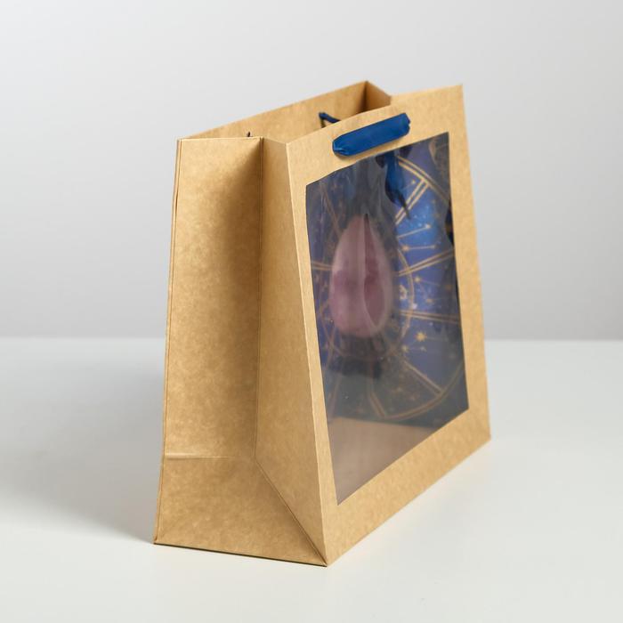 Пакет крафтовый с пластиковым окном «Stars», 31 х 26 х 11 см