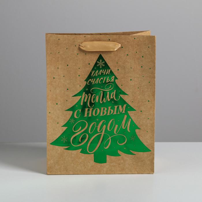 Пакет крафтовый вертикальный «Ёлочка нарядная», MS 18 x 23 x 10 см