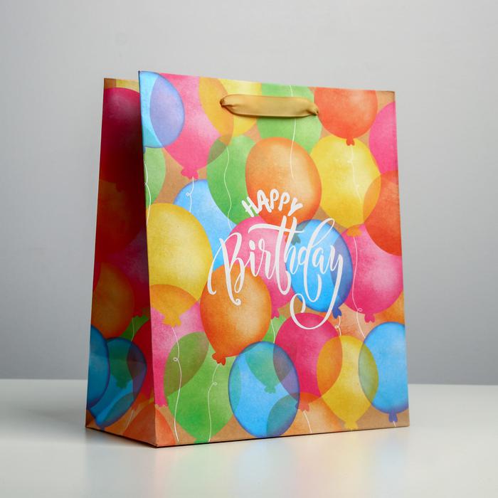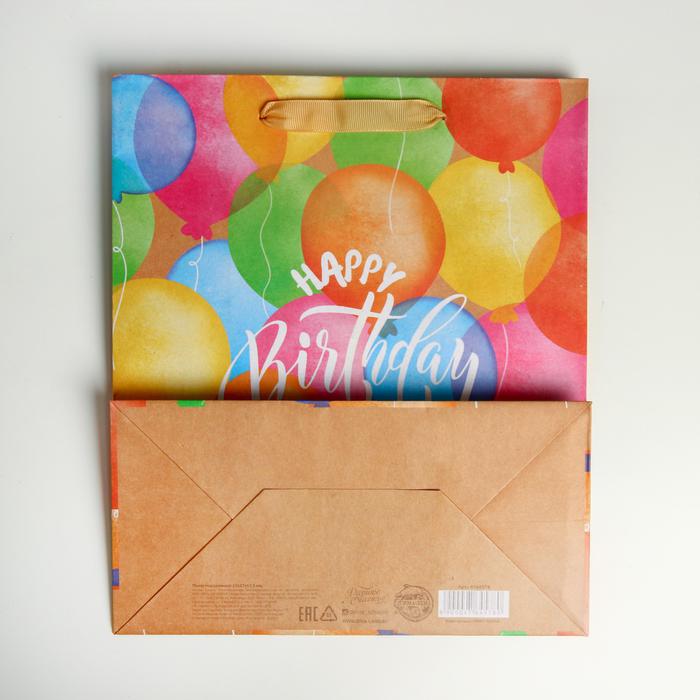 Пакет крафтовый вертикальный «Happy birthday», L 27 х 23 см х 11,5 см
