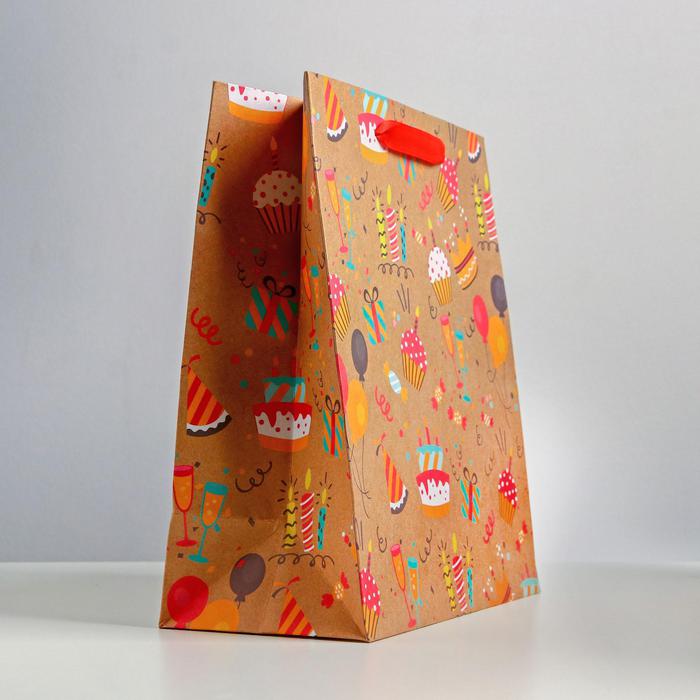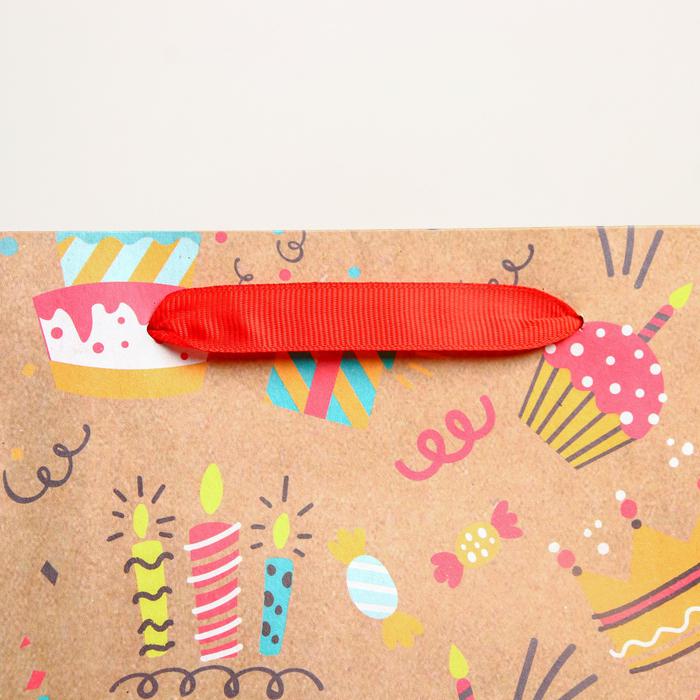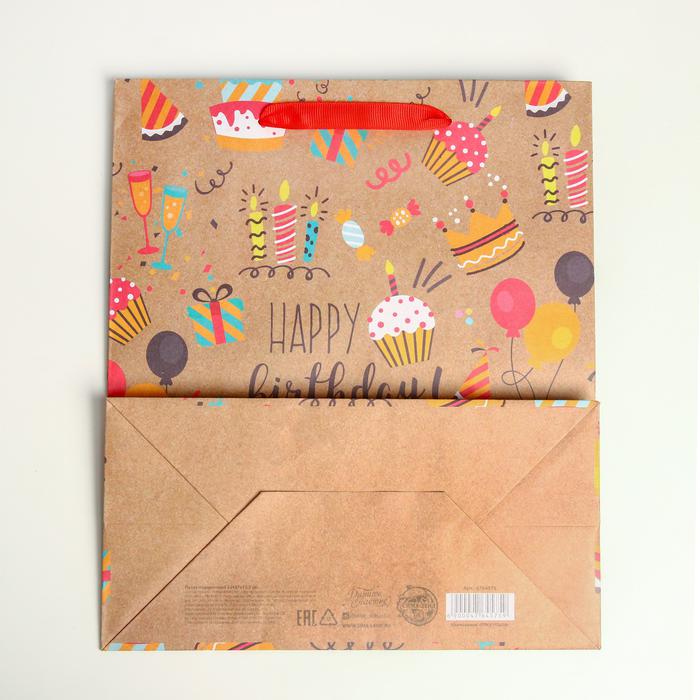 Пакет крафтовый вертикальный Happy birthday, ML 23 х 27 х 11.5 см