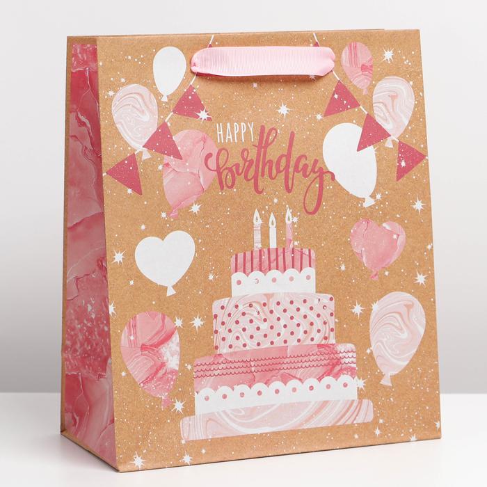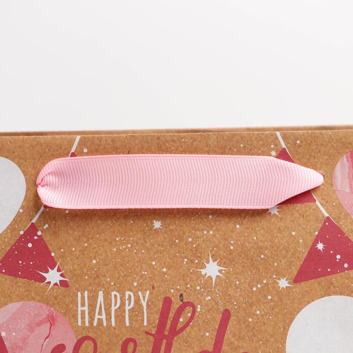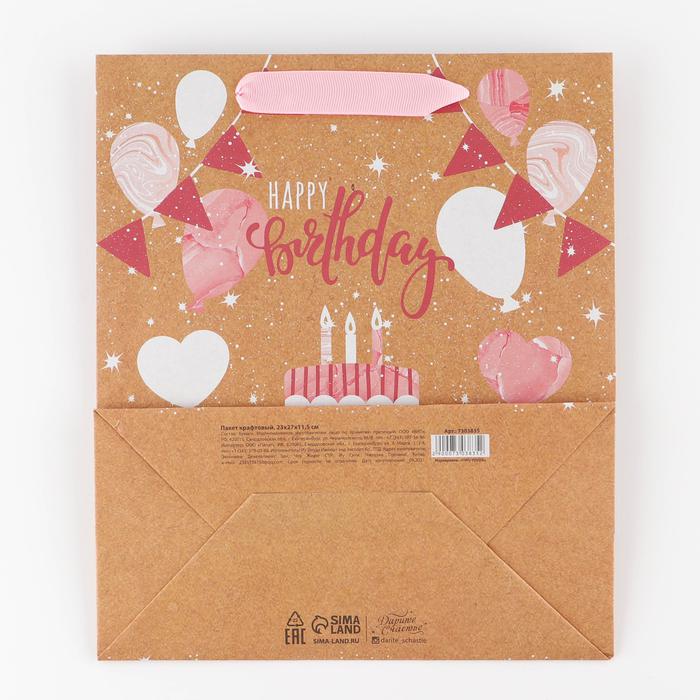 Пакет крафтовый вертикальный «Happy birthday», ML 23 х 27 х 11.5 см