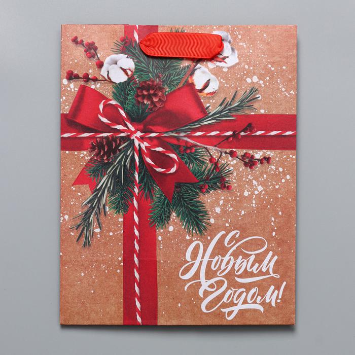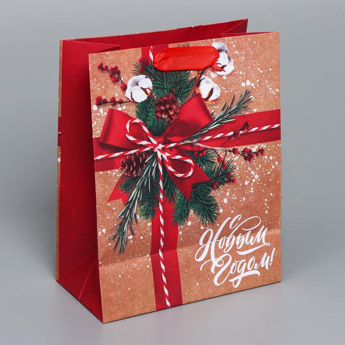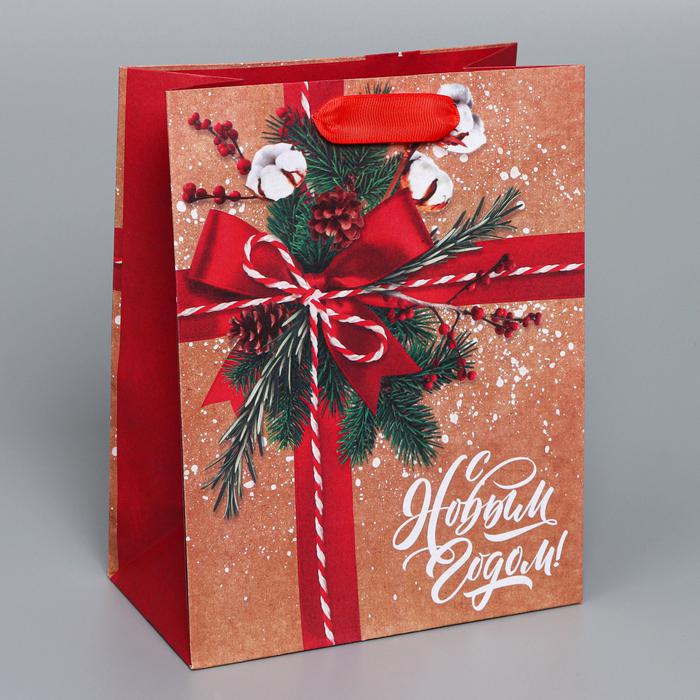 Пакет крафтовый вертикальный «К тебе с подарком», MS 18 x 23 x 10 см