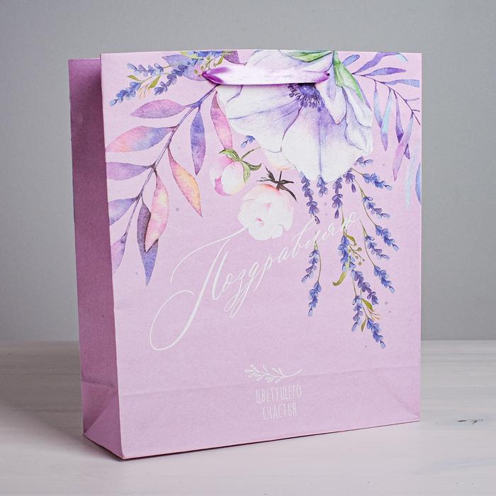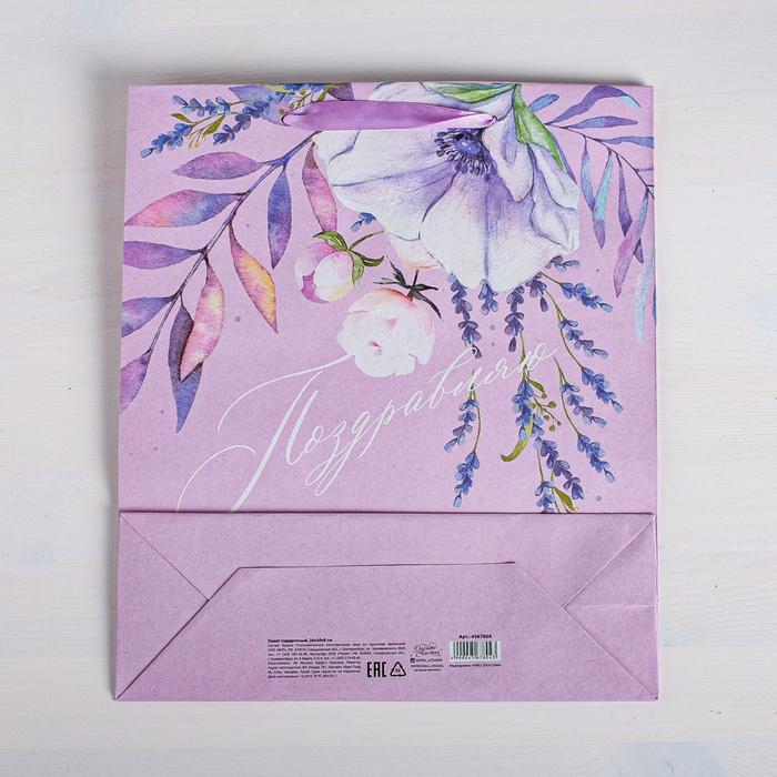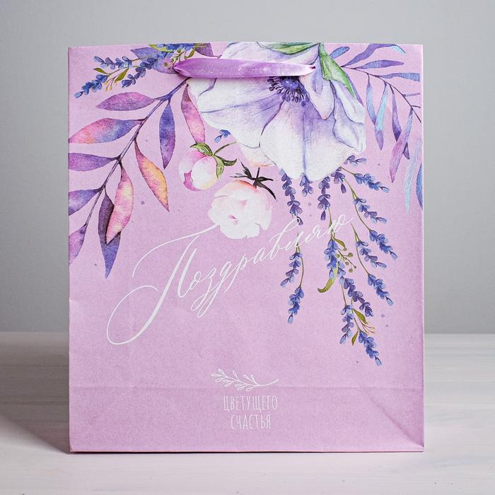 Пакет крафтовый вертикальный «Поздравляю», M 26 х 30 х 9 см