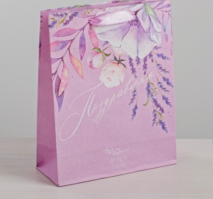 Пакет крафтовый вертикальный «Поздравляю», MS 18 x 23 x 8 см