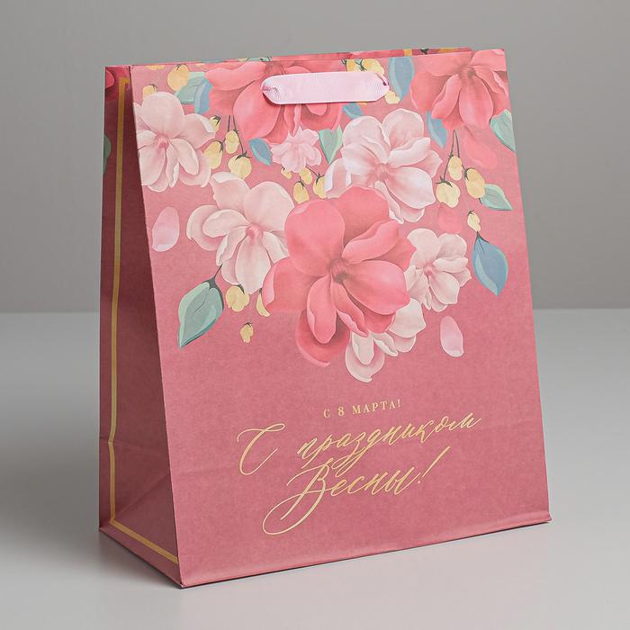 Пакет крафтовый вертикальный «С Праздником Весны!», ML 23 х 27 х 11,5 см