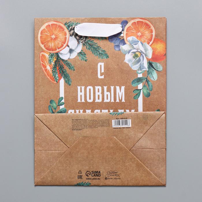 Пакет крафтовый вертикальный «Счастье», MS 18 x 23 x 10 см