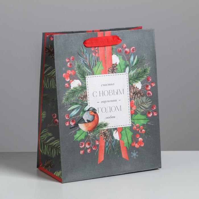 Пакет крафтовый вертикальный «Счастья и любви», MS 18 x 23 x 10 см