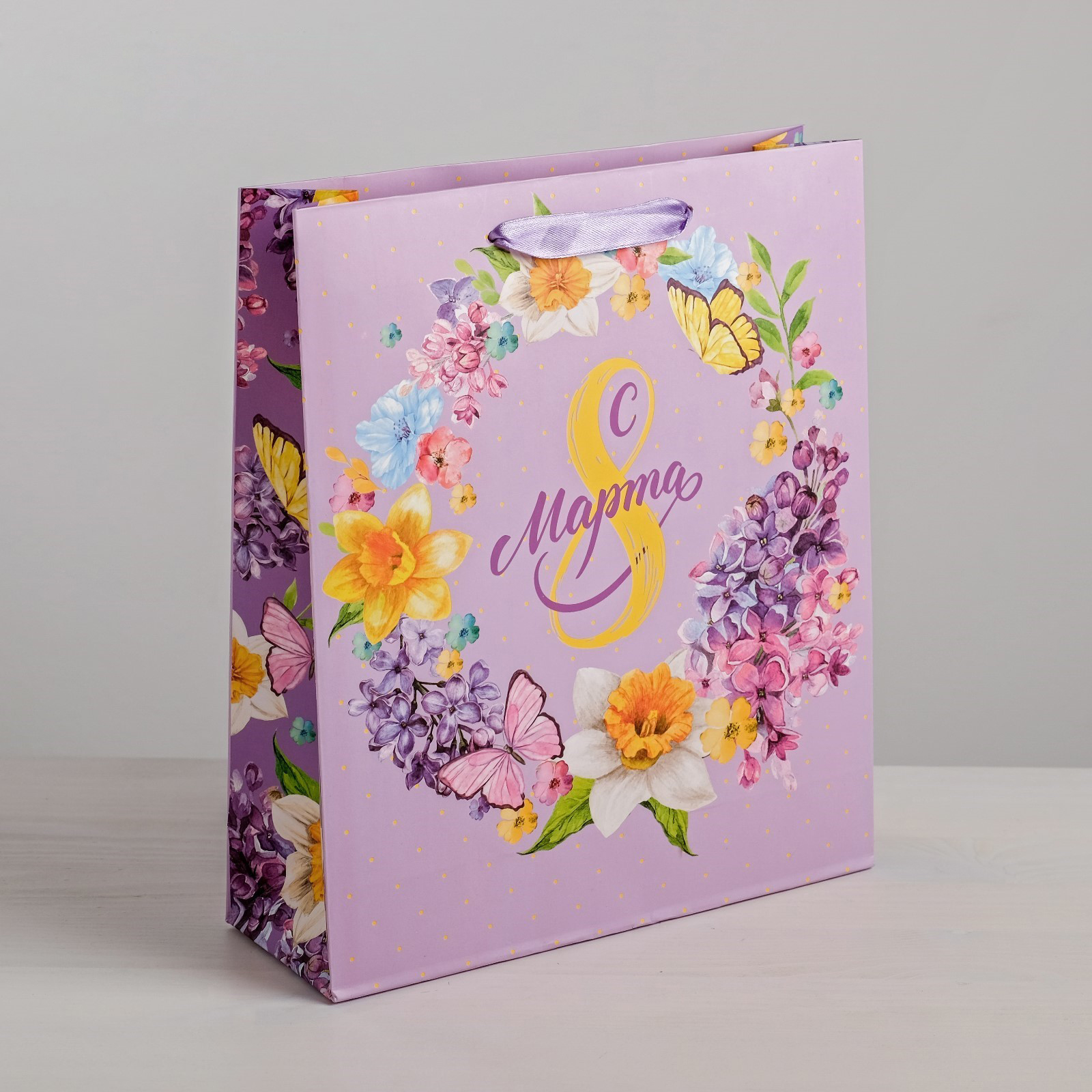 Пакет ламинированный вертикальный «С 8 марта», ML 23 x27 x 8 см