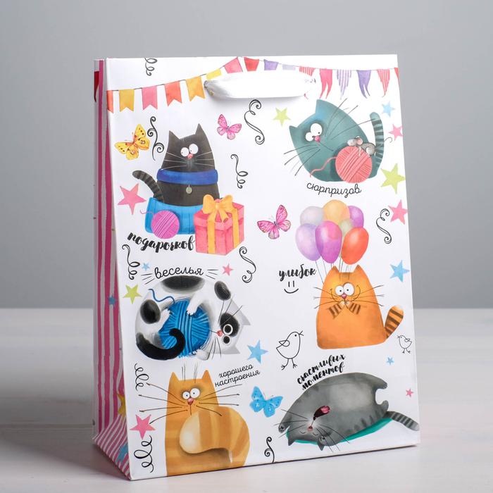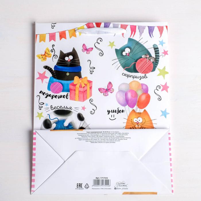 Пакет ламинированный вертикальный «Забавные коты», ML 23 х 27 х 8 см