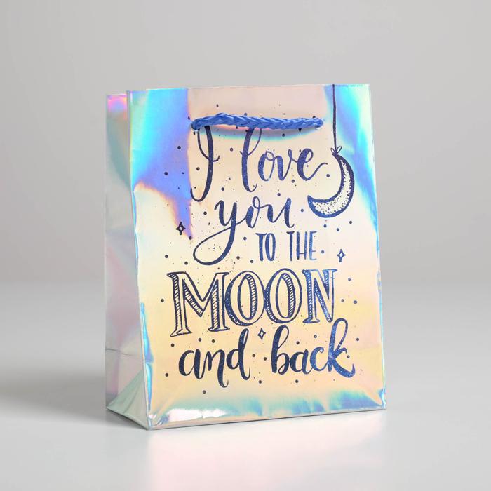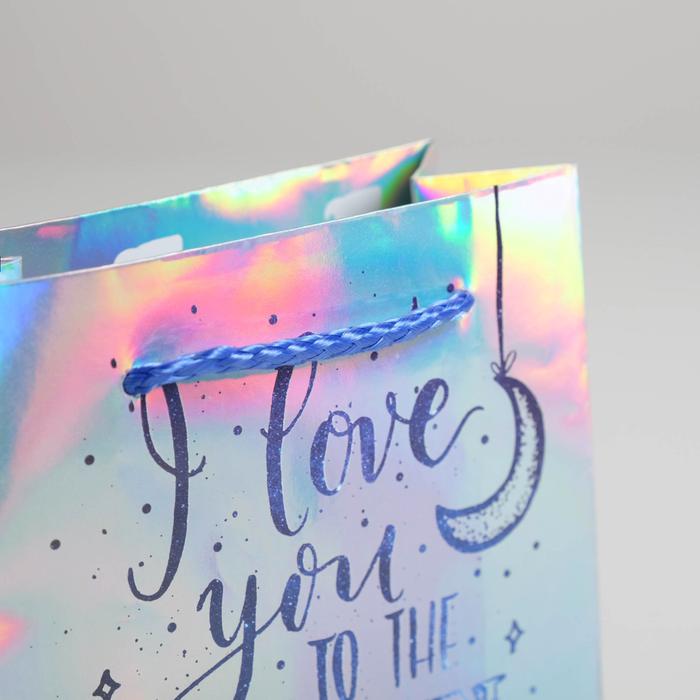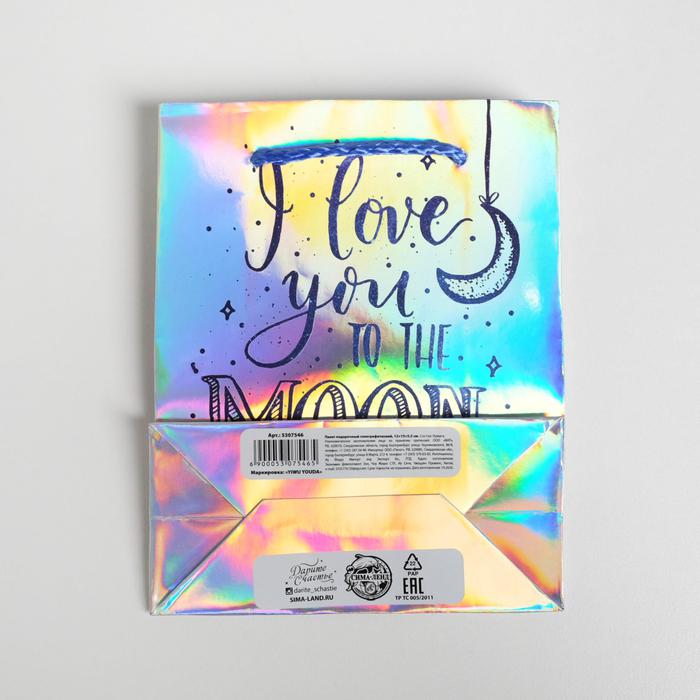 Пакет подарочный голографический I love you, 12 х 15 х 5,5 см