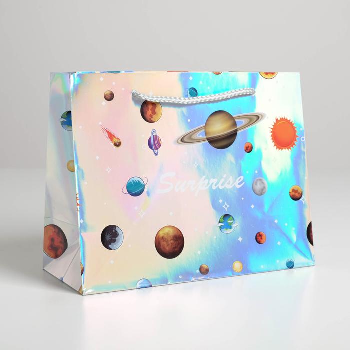 Пакет подарочный голографический Surprise, 23 х 18 х 10 см